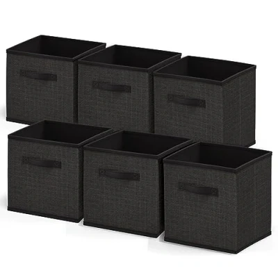 Nestl Cube Storage Bins, Foldable 6 Organizer Fabric Cubes, Basket with Handles, Black Closet 11 Inch Bins for Bedroom, Playroom and More