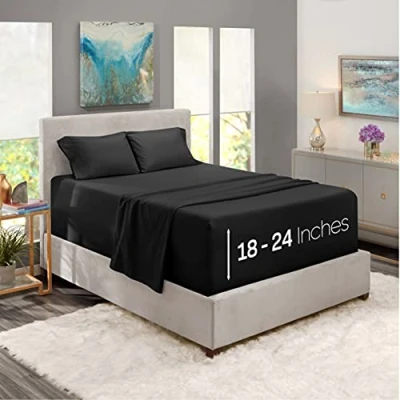 Nestl Extra Deep Pocket Sheets Fits Mattress 18 24 Inches Deep, King Size Sets, 4 Piece Sheets, Pocket, Black