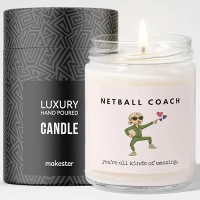 Netball Coach Gifts Luxury Soy Wax Candle Vanilla, Jasmine, Sugared Almond Makester