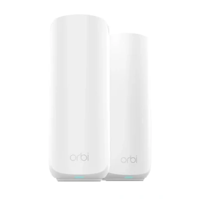 Mesh Wifi - Orbi 370 Series with WiFi 7 Mesh delivers speeds up to 3.6 Gbps for consistent performance across many devices at once WiFi 7 delivers 1.7x faster speeds than WiFi 6 and is fully backward compatible with older WiFi devices NETGEAR routers come with security measures built in, including automatic firmware updates. Our Advanced Router Protection enables enhanced safety features and updates designed to help protect you and your family Orbi Dual-band technology with Enhanced Backhaul helps deliver reliable WiFi speeds for your entire home Orbi powers 4K streaming, video conferencing, and gaming simultaneously, so everyone in your household can enjoy uninterrupted performance Elegant, new design and high-performance antennas provide exceptional 360° WiFi coverage across every corner of your home, no matter the layout Works with any internet service provider. A 2.5 Gig internet port unlocks today’s ultra-fast cable and fiber internet plans. Easily set up and manage your WiFi with the Orbi app Get powerful, reliable performance with a 2.5 Gig wired connection or 2.5 Gig wired backhaul option NETGEAR Armor provides a powerful suite of tools to help keep you safe online, including enhanced protection against hackers, malware and identity theft, at home or on the go. Includes 30-day trial