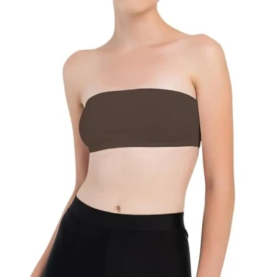 NetSetUK Girls Strapless Boob Tube Crop Tops Sleeveless Bandeau Vest Bra Stretchy Summer Beach Wear for Ages 7 16 Brown