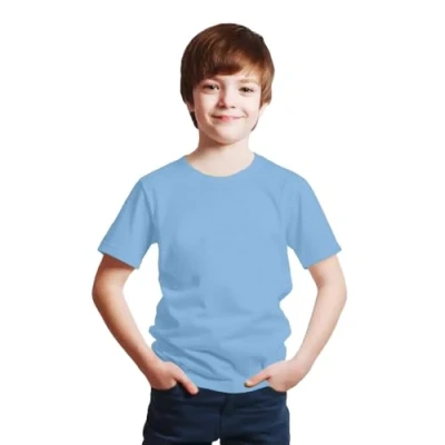 NetSetUK Kids Short Sleeve Crew Neck T Shirts Unisex Classic Fit Plain Cotton Rich Top UK (3 to 15 Years) Sky Blue