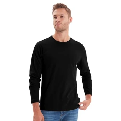 NetSetUK Mens Long Sleeve Crewneck Tshirt Black