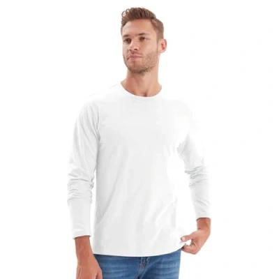 NetSetUK Mens Long Sleeve Crewneck Tshirt White