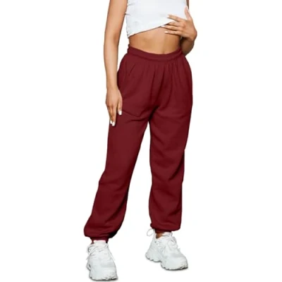 NetSetUK Plain Baggy Jogger Gym Sport Sweatpants Winters Joggers with Zipper Pockets and Elastic Waist Trousers for Jogging Hip Hop Pants Wine
