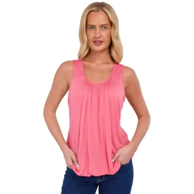 NetSetUK Women Bubble Hem Straps Vest Top Sleeveless Round Pleated Scoop Neckline Summer Ladies Loose Fit Elasticated Camisole Swing Waist Coral