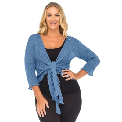 Chic & Versatile Layering Piece: This sheer, lightweight Bolero Cardigan Shrug Top adds a stylish touch to any outfit. Perfect for layering over sleeveless dresses, pairing with jeans or shorts, wearing at the beach, or packing for travel – effortlessly elevates both casual and dressy looks. Fabric Blend & Vibrant Colors: Crafted from a soft, lightweight mix of 71% Acrylic and 29% Polyamide, offering all-day comfort with a smooth, high-quality finish. Available in a stunning variety of colors to perfectly complement any look. Tie-Up Front Detail: The adjustable front tie allows you to customize the fit to your liking, whether you prefer a loose drape or a snug accent around the waist for a flattering silhouette. Designed with 3/4 sleeves, this bolero shrug provides light coverage while keeping you cool and stylish ideal for spring and summer outfits. One-Size Comfortable Fit (UK 8–20): These Women’s Plain Fish Net Knitted Tops designed with a flexible, stretch-knit fabric that adapts to various body shapes for a flattering fit. Approximate measurements: Length 56cm (22"), Bust 43cm (17"), Sleeve 40cm (16"). Stylish comfort made easy for everyday wear. Versatile For All Occasions: This lightweight tie-up crochet shrug adds an elegant finishing touch to any outfit. Whether you're dressing up for a wedding, heading to a party, stepping out for work, or just going about your day casually. Just slip it on over dresses, tops, or camis for an effortlessly chic look suitable for every event, day or night.
