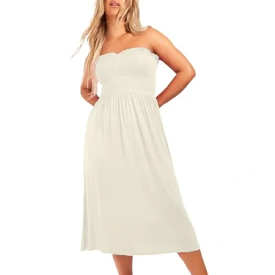 NetSetUK Women's Strapless Sheering Boob Tube Gather Oversized Plus Size Elasticated Bust Bandeau Plain Beach Summer Sleeveless Top Midi Dress for Ladies 8 22