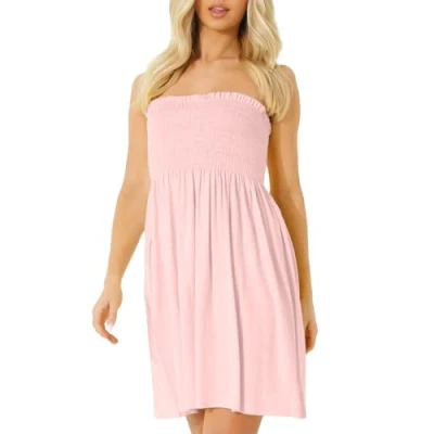 👌 [PRODUCT FEATURES]: This bandeau dress super elegant sheering top comes with stunning design and features like non-see-through thicker material, strapless, ruched design, bandeau neck, pullover, slim fit, over knee-length, secure elastic bands, stretchable, smooth. The strapless design looks absolutely sexy. Show off your body in style! 👌 [COMFY MATERIAL ]: womens summer mini dresses are made of 95% Viscose, 5% Elastane by maintaining the quality which gives you a seductive, attractive, charming, sexy and elegant look. You would love the way they make you feel extreme comfy. This soft and lightweight materials for strapless summer dress feel amazing on your skin. Perfect clipping makes it nice and breathable to wear. 👌 [WIDE OCCASIONS]: Women's lightweight beach swimsuit covers are easy to carry with you anywhere, summer dresses for women simple and comfortable wear as a coverup or daily dress, perfect for swimming pool party, sun bath, beach vacation, water sports outdoors. Just wear this trendy swimwear beach wear, this womens summer dresses dress coverup will make you look more charming. 👌 [GREAT GIFT IDEA]: Womens summer dress is the perfect gift to your loved ones and most importantly for yourself for Halloween, Valentine's Day, Christmas, birthday, New Year, or anniversary. strapless dress ,summer midi dress,A Must Have For Any Ladies Wardrobe, Can Be Presented On Birthdays, Anniversary, Women's Day, Christmas or Any Occasion. 👌 [SERVICE EXCELLENCE]: Discover the perfect blend of fashion and comfort with our summer bandeau dresses. We take pride in offering friendly, customer-oriented service and top-notch products. Elasticated summer dresses for women are designed for versatility, ensuring you're ready for any occasion. Elevate your style with ladies summer dresses confidence and convenience.