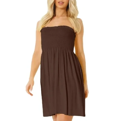 NetSetUK Women's Strapless Sheering Boob Tube Gather Oversized Plus Size Elasticated Bust Bandeau Plain Beach Summer Sleeveless Top Mini Dress for Ladies 8 22 Brown