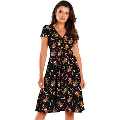 NetSetUK Womens Christmas Midi Dress Santa Xmas Reindeer Snowflake Gingerbread Tree Printed Novelty Swing