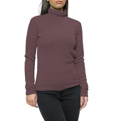 NetSetUK Womens Tops Long Sleeve Turtle Neck Plain Ribbed Jumper T Shirt for Ladies Brown