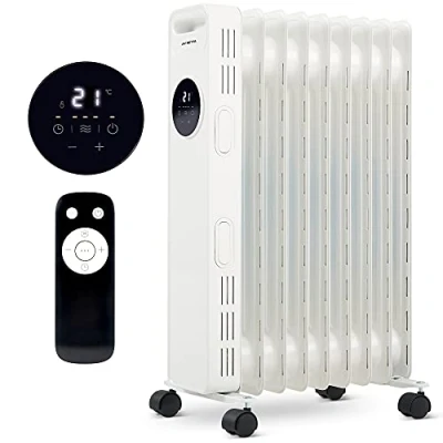 NETTA Oil Filled Radiator Heater 2000W with 24 Hour Timer, 3 Heat Settings, Remote Control, LED Digital Display, Overheating and Tip Over Protection 9 Fin, White