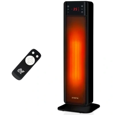 NETTA Tower Electric Heater, 75 Oscillation with Thermostat and Remote Control, 3 Settings 24 Hour Timer, Energy Efficient, Overheat & Tip Over Protection, Quiet 2000W Black