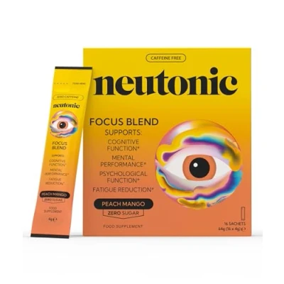 Neutonic Nootropic Focus Blend Powder Peach Mango 16 Sticks Caffeine Free, Zero Sugar Support Memory, Mental Clarity, Cognitive Function Boost Focus, Energy, Brain Health