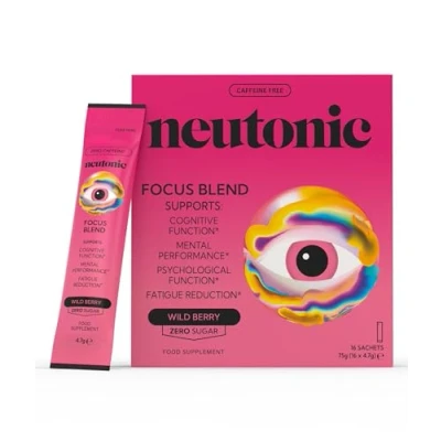 Neutonic Nootropic Focus Blend Powder Wild Berry 16 Sticks Caffeine Free, Zero Sugar Support Memory, Mental Clarity, Cognitive Function Boost Focus, Energy, Brain Health