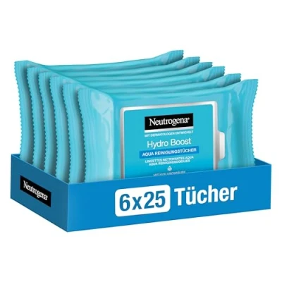 Neutrogena Hydro Boost Aqua Cleansing Wipes/With Technology, Hyaluronic Acid and Moisturiser / 25 ml (Pack of 6)
