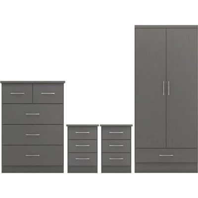 Nevada 2 Door 1 Drawer Wardrobe Bedroom Set 3D Effect Grey