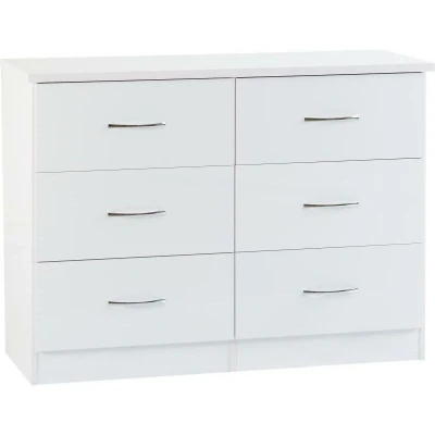 Nevada Chest Of Drawers 6 Drawer With Metal Handle Storage Unit (White Gloss)