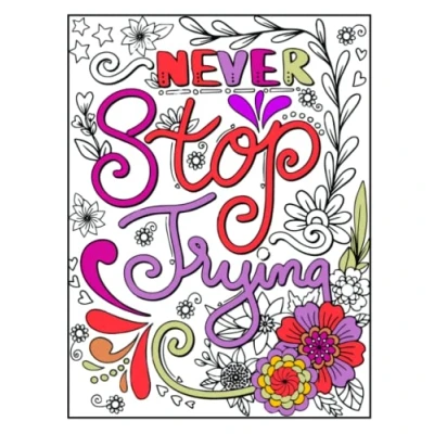 Never Stop Trying: Quotes Coloring Book With Stress Relief Designs And Nice Fonts For Ladies Girls