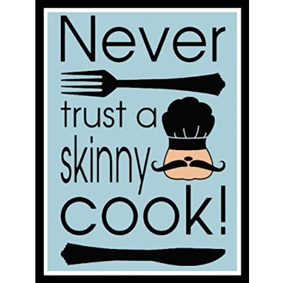 NEVER TRUST A SKINNY COOK RETRO METAL TIN WALL PLAQUE SIGN NOVELTY GIFT Home bar kitchen shed man cave (150MM x 200MM 8" 6")