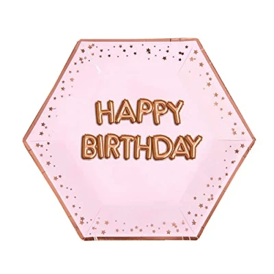 Neviti 774380 Glitz and Glamour Pink & Rose Gold Large Plate Happy Birthday Paper, 27 x 0.5