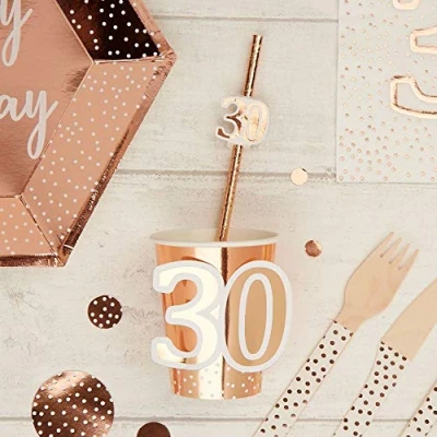 Pack of 8 cups 30th Birthday Party Co-ordinate with matching items Made of paper, Manufacturer: Neviti