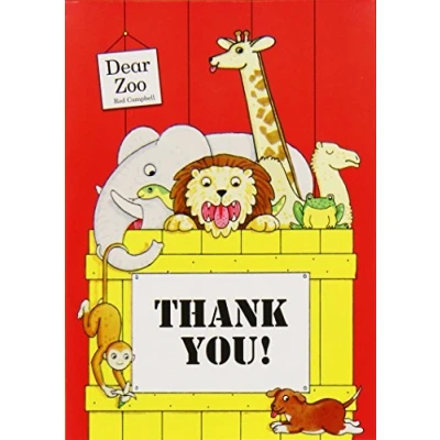 Based on the book "Dear Zoo" by Rod Campbell Pack of 10 Thank you cards with envelopes Feature the characters from the Dear Zoo book Plenty of space to write your thank you messages Can be co-ordinated with other pieces in the Dear Zoo range., Manufacturer: CSC Imports