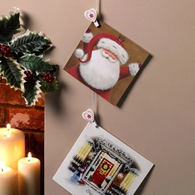 Pack of 20 pegs and 5 meters of ribbon Perfect for displaying your Christmas cards They can be co-ordinated with the full ‘Festive Noel’ range or used alone