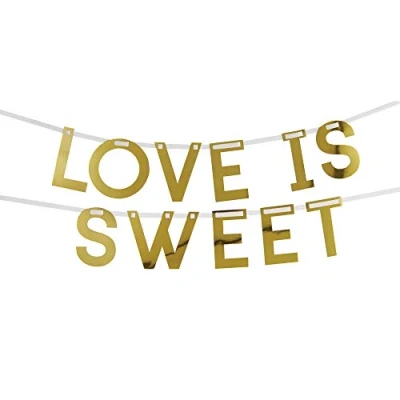 Gold card bunting measuring 2 metres Reads Love is Sweet Suitable for indoor and outdoor use Can be coordinated with other pieces in the Geo Floral collection, Manufacturer: Neviti
