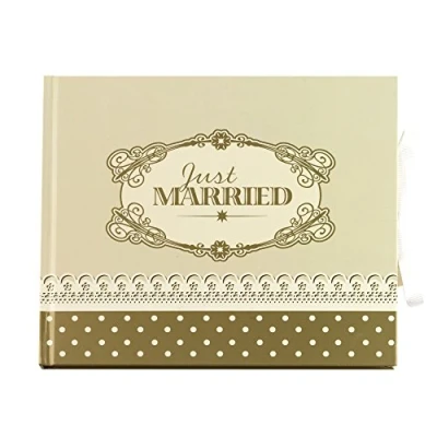 Neviti Contemporary Heart Wedding/Anniversary Guest Book Ivory/Gold