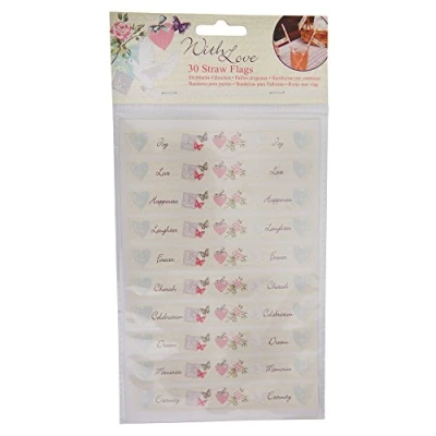 Supplied in packs of 30 flags Ideal for use the matching soft pink and white straws in the range Adds an extra flourish to your wedding drinks Coordinate with the full With Love range