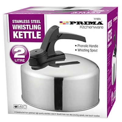 New 2L Stainless Steel Aluminium Whistling Kettle Camping Fishing Home Lightweight Litre PHENOLIC Handle SPOUT