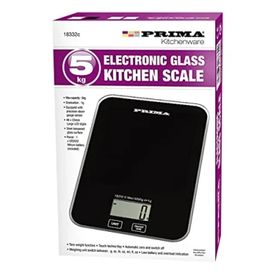 New 5kg Digital Kitchen Scales Food Scale with Tempered Glass Platform Electronic Cooking Backlit LCD Display Multifunctional Weighing Home Office Baking