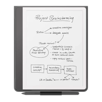 Amazon Designed exclusively for your new Kindle Scribe - Compatible only with Kindle Scribe 2024 and 2022 Releases. Sleek design - Device magnetically attaches to a slim folio, rather than snapping into a plastic back like a traditional Kindle cover, for hours of comfortable reading and writing. Premium materials - Made with natural leather that patinas over time, from suppliers rated Gold by the Leather Working Group. Added Functionality - Front cover transforms into a built-in stand with choice of low or high angle positions for hands-free reading. Effortless attachment for stylus - Pen holder keeps your Kindle Scribe Premium Pen secure. Or, choose to attach your pen magnetically to the side of your Kindle Scribe. Completes your experience - Opens and closes to wake your Kindle Scribe up or put it to sleep. Magnetic attachment ensures cover closes securely. Protective - Microfiber interior helps protect your screen from scratches. Sustainable packaging - 99% of this product’s packaging is made of wood fiber-based materials from responsibly managed forests or recycled sources. Choose from two colors—Black, Jade
