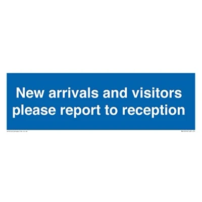 No Symbol This sign is made from vinyl / sticker Air Release vinyl makes it easy to stick to flat, clean surfaces without bubbles. Not for rough, plastic or dusty surfaces. 31 Sign Text: New arrivals and visitors please report to reception