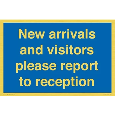New arrivals and visitors. Please report to reception Sign 300x200mm A4L