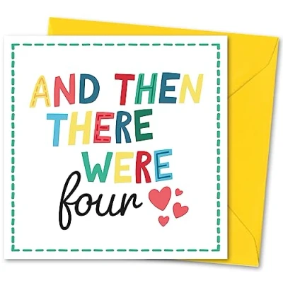 New Baby Card. Birthday Card with Matching Envelope. and then there were 4" design. size 148x148mm. Eco friendly. Message inside. Printed Packed in UK.