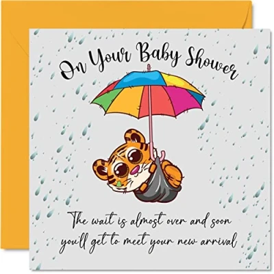 MAKE THEM SMILE WITH THIS CONGRATULATIONS BABY CARD: This exceptional quality card for her or him shows the design "On your baby shower The wait is almost over and soon you'll get to meet your new arrival". If you are looking for congratulations cards for women, then then this baby unisex cards newborn 2022 is bound to make them smile. Not just a its a baby card for him or her this could also be for a new baby cards boy or girl for Friend, Colleague, Brother, Sister, Uncle, Auntie or Family. WHAT DO YOU GET: The card is printed on one side and BLANK ON THE INSIDE to allow you to write your very own message. The unique fun design is printed on a specially sourced and environmentally responsible board. At 360 microns thick the natural white one-sided gloss board has a quality look and feel. Supplied with a coloured gummed envelope to complement the design and ready to be sealed and sent in the post. NO INK SMUDGES: There is nothing worse than writing inside a card to find that the shiny surface makes the ink smudge. This is why we use a high quality one sided coated board. The uncoated side will absorb more of the ink from your pen to make smudging a thing of the past. SIZES: Greeting Card = 145mm x 145mm, Envelope = 155mm x 155mm, Card Thickness = 360 micron. Great birth of baby card. Congratulations cards, congratulation card, new baby boy cards, new baby girl cards, the new baby card, grandparents cards for new baby, baby cards congratulations, new baby gift. MADE AND QUALITY CHECKED IN THE UK: We print and manufacture all our product right her in the UK so you can be sure of a fast turnaround and a product that is expertly made. Using environmentally responsible premium board our card is conscious of the responsible management of the world's forests - milestone baby cards, congratulations newborn card, birth cards for baby.