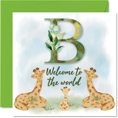 MAKE THEM SMILE WITH THIS CONGRATULATIONS BABY CARD: This exceptional quality card for her or him shows the design "B Welcome to the world". If you are looking for awesome congratulations greetings cards for women, then then this baby unisex cards newborn 2022 is bound to make them smile. Not just a its a baby card for him or her this could also be for a new baby cards boy or girl for Friend, Work Colleague, Brother, Sister, Uncle, Auntie or Family. WHAT DO YOU GET: The card is printed on one side and BLANK ON THE INSIDE to allow you to write your very own message. The unique fun design is printed on a specially sourced and environmentally responsible board. At 360 microns thick the natural white one-sided gloss board has a quality look and feel. Supplied with a coloured gummed envelope to complement the design and ready to be sealed and sent in the post. NO INK SMUDGES: There is nothing worse than writing inside a card to find that the shiny surface makes the ink smudge. This is why we use a high quality one sided coated board. The uncoated side will absorb more of the ink from your pen to make smudging a thing of the past. SIZES: Greeting Card = 145mm x 145mm, Envelope = 155mm x 155mm, Card Thickness = 360 micron. Great birth of baby card. Congratulations cards, congratulation card, new baby boy cards, new baby girl cards, the new baby card, grandparents cards for new baby, baby cards congratulations, new baby gift. MADE AND QUALITY CHECKED IN THE UK: We print and manufacture all our product right her in the UK so you can be sure of a fast turnaround and a product that is expertly made. Using environmentally responsible premium board our card is conscious of the responsible management of the world's forests - milestone baby cards, congratulations newborn card, birth cards for baby.