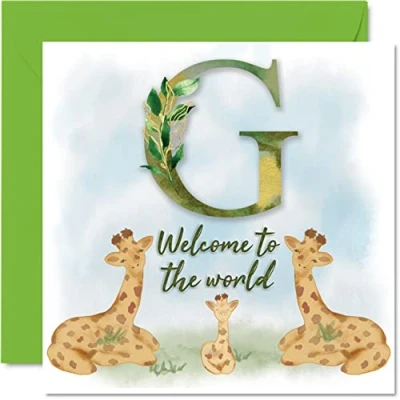 MAKE THEM SMILE WITH THIS CONGRATULATIONS BABY CARD: This exceptional quality card for her or him shows the design "G Welcome to the world". If you are looking for awesome congratulations greetings cards for women, then then this baby unisex cards newborn 2022 is bound to make them smile. Not just a its a baby card for him or her this could also be for a new baby cards boy or girl for Friend, Work Colleague, Brother, Sister, Uncle, Auntie or Family. WHAT DO YOU GET: The card is printed on one side and BLANK ON THE INSIDE to allow you to write your very own message. The unique fun design is printed on a specially sourced and environmentally responsible board. At 360 microns thick the natural white one-sided gloss board has a quality look and feel. Supplied with a coloured gummed envelope to complement the design and ready to be sealed and sent in the post. NO INK SMUDGES: There is nothing worse than writing inside a card to find that the shiny surface makes the ink smudge. This is why we use a high quality one sided coated board. The uncoated side will absorb more of the ink from your pen to make smudging a thing of the past. SIZES: Greeting Card = 145mm x 145mm, Envelope = 155mm x 155mm, Card Thickness = 360 micron. Great birth of baby card. Congratulations cards, congratulation card, new baby boy cards, new baby girl cards, the new baby card, grandparents cards for new baby, baby cards congratulations, new baby gift. MADE AND QUALITY CHECKED IN THE UK: We print and manufacture all our product right her in the UK so you can be sure of a fast turnaround and a product that is expertly made. Using environmentally responsible premium board our card is conscious of the responsible management of the world's forests - milestone baby cards, congratulations newborn card, birth cards for baby.