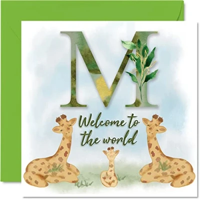 MAKE THEM SMILE WITH THIS CONGRATULATIONS BABY CARD: This exceptional quality card for her or him shows the design "M Welcome to the world". If you are looking for awesome congratulations greetings cards for women, then then this baby unisex cards newborn 2022 is bound to make them smile. Not just a its a baby card for him or her this could also be for a new baby cards boy or girl for Friend, Work Colleague, Brother, Sister, Uncle, Auntie or Family. WHAT DO YOU GET: The card is printed on one side and BLANK ON THE INSIDE to allow you to write your very own message. The unique fun design is printed on a specially sourced and environmentally responsible board. At 360 microns thick the natural white one-sided gloss board has a quality look and feel. Supplied with a coloured gummed envelope to complement the design and ready to be sealed and sent in the post. NO INK SMUDGES: There is nothing worse than writing inside a card to find that the shiny surface makes the ink smudge. This is why we use a high quality one sided coated board. The uncoated side will absorb more of the ink from your pen to make smudging a thing of the past. SIZES: Greeting Card = 145mm x 145mm, Envelope = 155mm x 155mm, Card Thickness = 360 micron. Great birth of baby card. Congratulations cards, congratulation card, new baby boy cards, new baby girl cards, the new baby card, grandparents cards for new baby, baby cards congratulations, new baby gift. MADE AND QUALITY CHECKED IN THE UK: We print and manufacture all our product right her in the UK so you can be sure of a fast turnaround and a product that is expertly made. Using environmentally responsible premium board our card is conscious of the responsible management of the world's forests - milestone baby cards, congratulations newborn card, birth cards for baby.