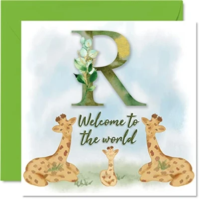 MAKE THEM SMILE WITH THIS CONGRATULATIONS BABY CARD: This exceptional quality card for her or him shows the design "R Welcome to the world". If you are looking for awesome congratulations greetings cards for women, then then this baby unisex cards newborn 2022 is bound to make them smile. Not just a its a baby card for him or her this could also be for a new baby cards boy or girl for Friend, Work Colleague, Brother, Sister, Uncle, Auntie or Family. WHAT DO YOU GET: The card is printed on one side and BLANK ON THE INSIDE to allow you to write your very own message. The unique fun design is printed on a specially sourced and environmentally responsible board. At 360 microns thick the natural white one-sided gloss board has a quality look and feel. Supplied with a coloured gummed envelope to complement the design and ready to be sealed and sent in the post. NO INK SMUDGES: There is nothing worse than writing inside a card to find that the shiny surface makes the ink smudge. This is why we use a high quality one sided coated board. The uncoated side will absorb more of the ink from your pen to make smudging a thing of the past. SIZES: Greeting Card = 145mm x 145mm, Envelope = 155mm x 155mm, Card Thickness = 360 micron. Great birth of baby card. Congratulations cards, congratulation card, new baby boy cards, new baby girl cards, the new baby card, grandparents cards for new baby, baby cards congratulations, new baby gift. MADE AND QUALITY CHECKED IN THE UK: We print and manufacture all our product right her in the UK so you can be sure of a fast turnaround and a product that is expertly made. Using environmentally responsible premium board our card is conscious of the responsible management of the world's forests - milestone baby cards, congratulations newborn card, birth cards for baby.
