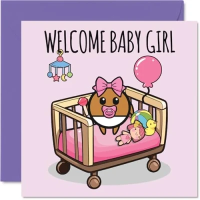 MAKE THEM SMILE WITH THIS WELCOME BABY GIRL CARD: This exceptional quality congratulations on your newborn baby card shows a cute baby girl with the words "Welcome Baby Girl". If you are looking for heartfelt congratulations greetings cards for parents, then then this newborn baby girl card is bound to make them smile. This could be for Friend, Work Colleague, Brother, Sister, Uncle, Auntie or Family. WHAT DO YOU GET: The cards are printed on both sides with the inside print showcasing a cute verse and ample space for your own personal message. The unique fun design is printed on a specially sourced and environmentally responsible board. At 360 microns thick, the natural white one-sided gloss board has a quality look and feel. Supplied with a coloured gummed envelope to complement the design and ready to be sealed and sent in the post. NO INK SMUDGES: There is nothing worse than writing inside a card to find that the shiny surface makes the ink smudge. This is why we use a high quality one sided coated board. The uncoated side will absorb more of the ink from your pen to make smudging a thing of the past. SIZES: Greeting Card = 145mm x 145mm, Envelope = 155mm x 155mm, Card Thickness = 360 micron. Great birth of baby girl card. Congratulations cards, congratulation card, new baby girl cards, the new girl card, grandparents cards for new baby boy, baby girl cards congratulations, new girl gift. MADE AND QUALITY CHECKED IN THE UK: We print and manufacture all our product right her in the UK so you can be sure of a fast turnaround and a product that is expertly made. Using environmentally responsible premium board our card is conscious of the responsible management of the world's forests - milestone baby cards, congratulations newborn card, birth cards for baby girl.
