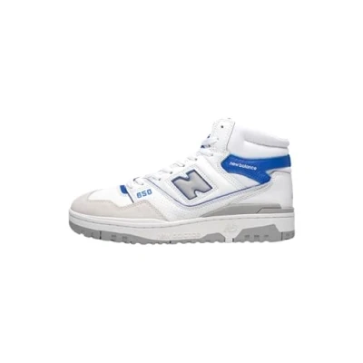 Item name: New Balance 574 Classic, Men's Sneakers, White, Navy, Angora, 42 EU Suede trim, padded nylon collar and tongue, removable insole lace closure round toe