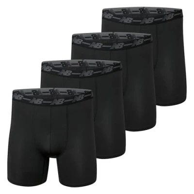 New Balance Men's 5" Performance No Fly Boxer Brief Underwear (4 Pack), Black/Black/Black/Black, XXL