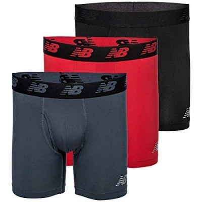 New Balance Men's 6" Boxer Brief Trunk Underpants Fly Front with Pouch Underwear 3 Pack, Black/Team Red/Thunder, Large