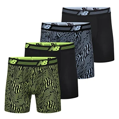 New Balance Men's Standard Performance 6" NO Fly Boxer Brief (4 Pack), Black/Azure Print/Black/Hi Lite Print, Medium