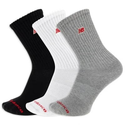 New Balance Organic Cotton Crew Socks 3 Pairs Arch Support, Black Assorted Patch Logo, Large