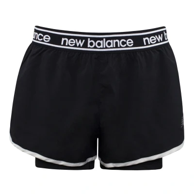 Designed to go from the gym to the field with ease, our Relentless 2-in-1 Shorts combine a lightweight woven outer short with a supportive and stretchy inner short. These women’s performance shorts feature an exposed elastic waistband for a secure fit and a stylish modern look. They have NB DRY technology to wick away sweat, helping you stay cool and comfortable. FeaturesNB DRY fast-drying technology pulls moisture away from your body to help you work out with easeMid rise sits just below the waist for easy fit and movementLightweight woven outer short with stretch inner short2.5"" inseam on outer short; 5"" inseam on inner shortAthletic fit designed to rise close to your body and skim the hip and thigh —perfect for active movement with a fit that’s not too tightExposed NB branded elastic waistband